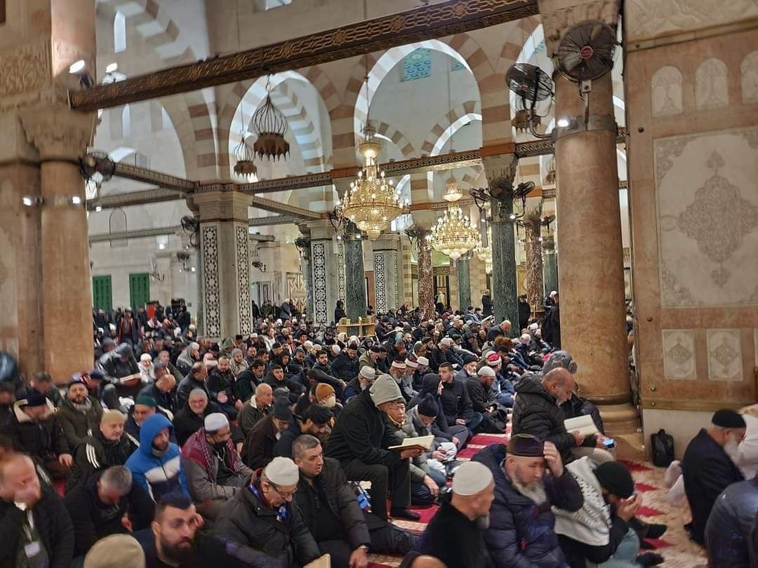 أدى آلاف المواطنين صلاة الفجر، اليوم السبت، في المسجد الأقصى المبارك،في ذكرى الإسراء والمعراج.