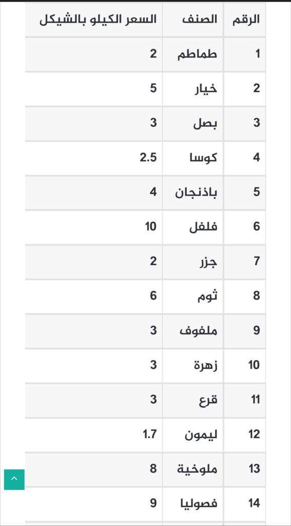 أخــبـــــار, محليأسعار الخضروات والدجاج واللحوم في أسواق قطاع غزة Posted on فبراير 19, 2023فبراير 19, 2023 by M 19 فبراير غزة – المواطنجاءت قائمة أسعار الخضروات والدجاج واللحوم في أسواق قطاع غزة،اليوم الأحد 19 فبراير 2023،عالنحو الآتي: M توقعات حالة الطقس في فلسطين لهذا اليوم أسعار الذهب تواصل ارتفاعها..كم بلغ سعره اليوم؟