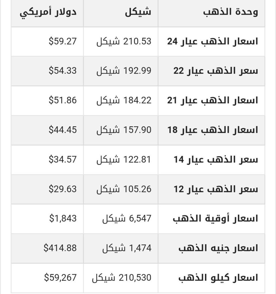 وفيما يلي جاءت أسعار الذهب عالنحو الآتي:
