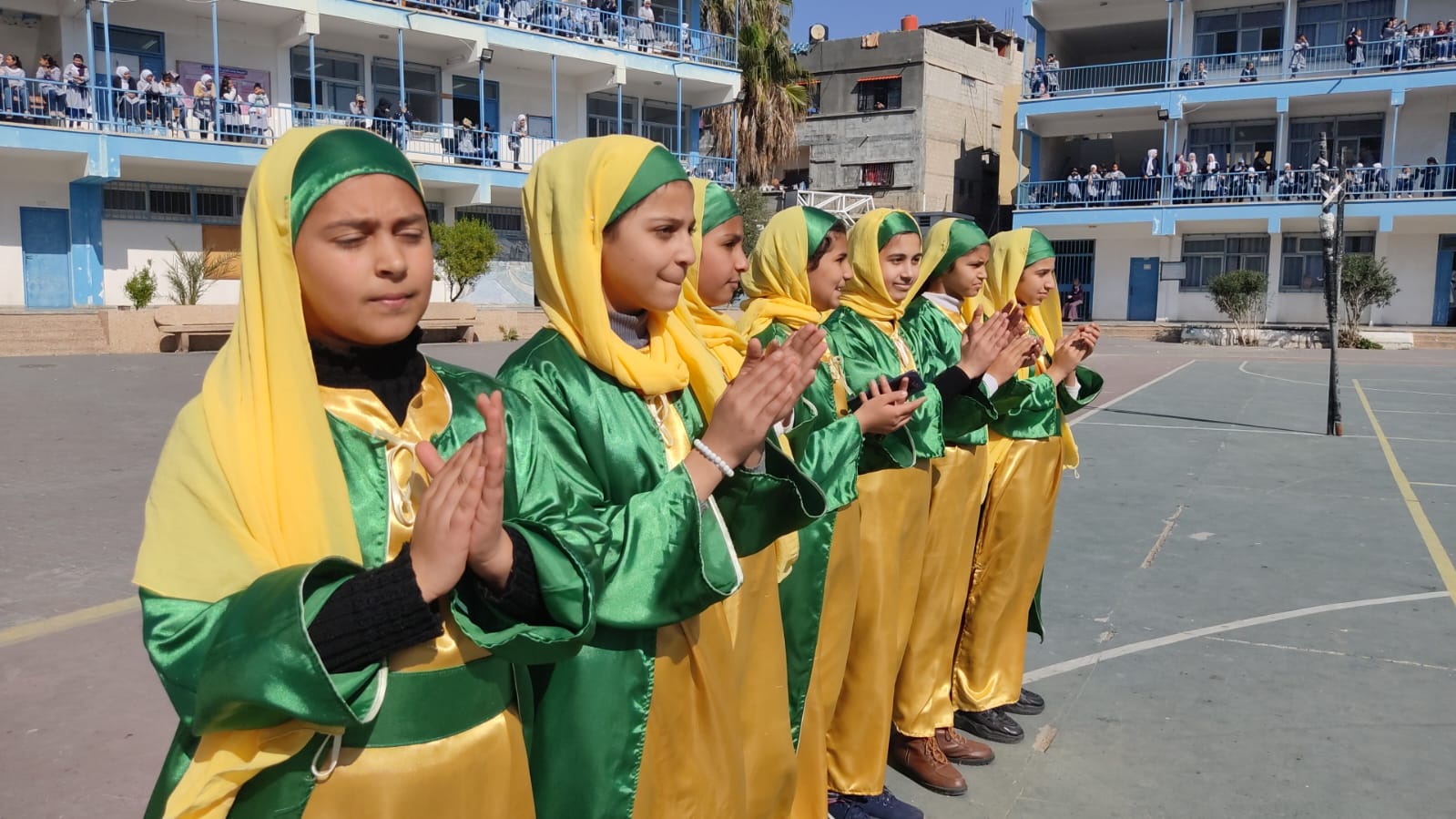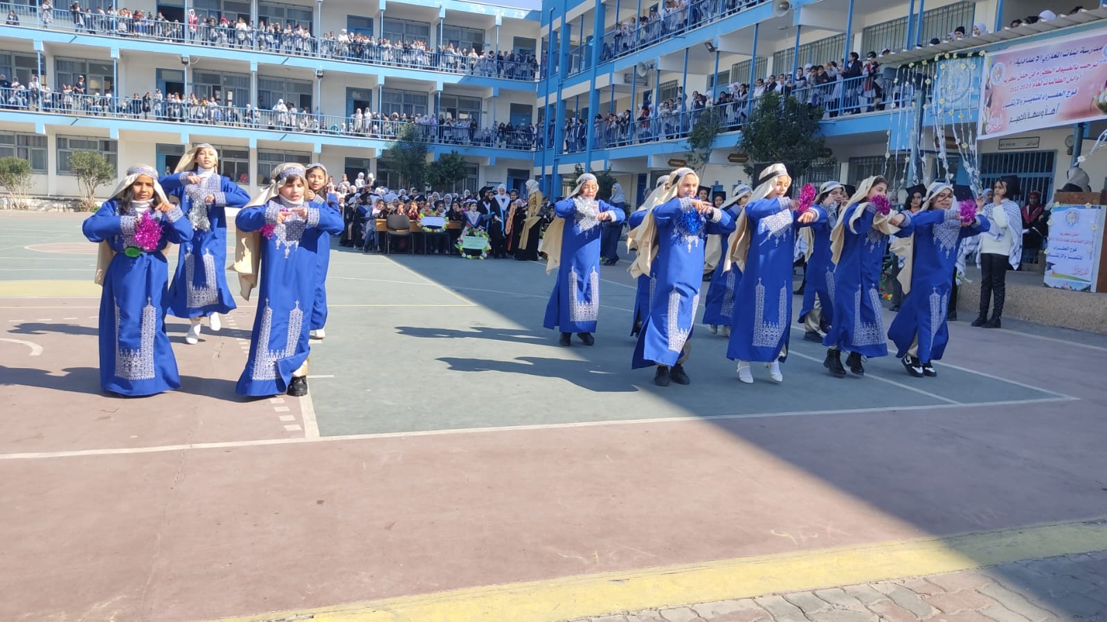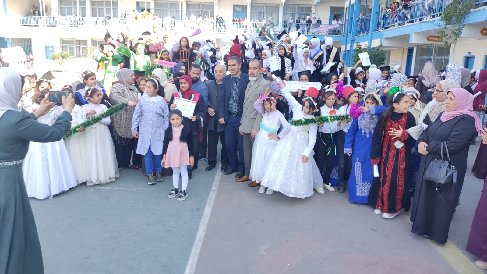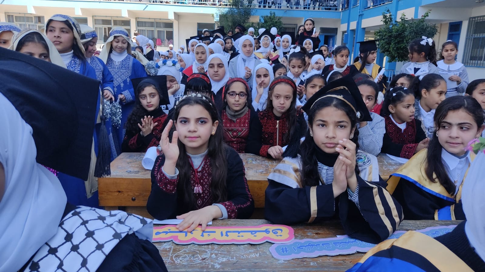 وكانت قد حصلت كذلك ثلاث طالبات من الصف التاسع من المدرسة في العام الماضي على المرتبة الأولى على مستوى القطاع بمعد100%.