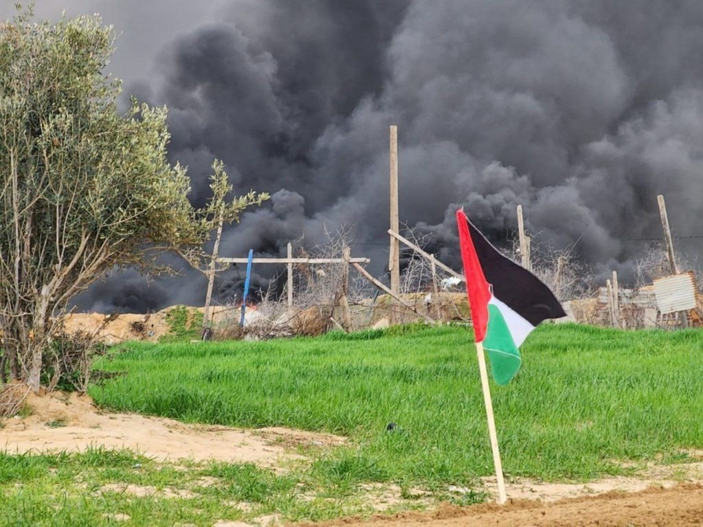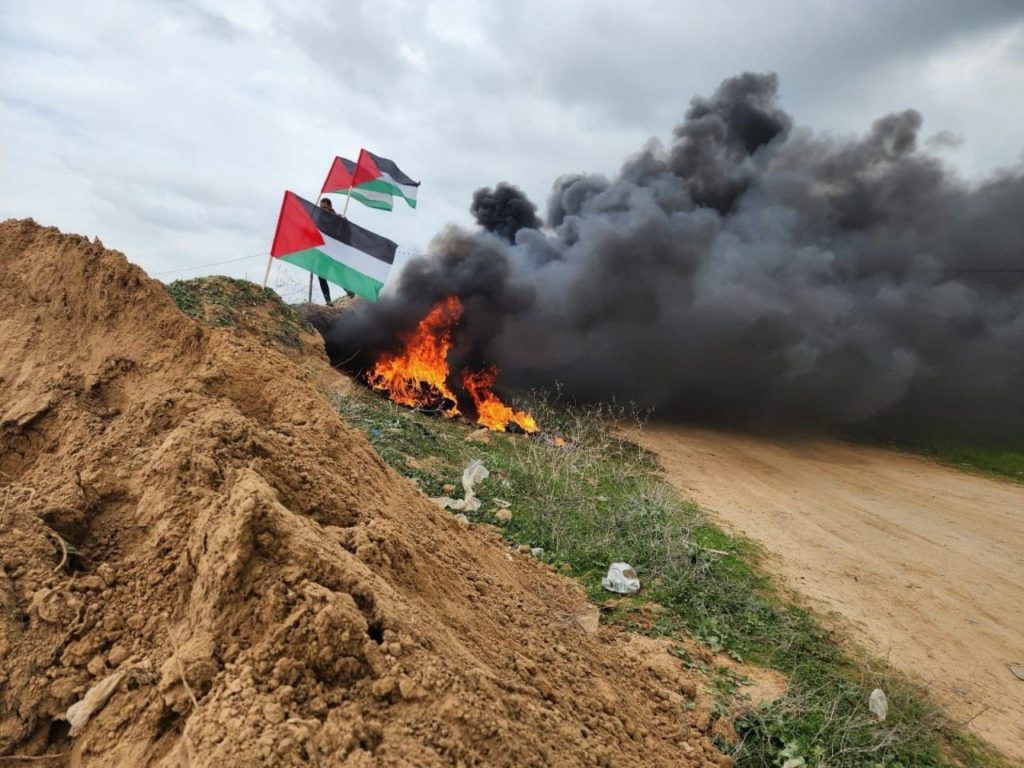 وأقدم الشباب الفلسطيني على إشعال الإطارات المطاطية شرق مخيم العودة في خزاعة شرق مدينة خان يونس جنوب قطاع غزة، حداداً على أرواح شهداء نابلس ورفضًا للجرائم الإسرائيلية المتواصلة.