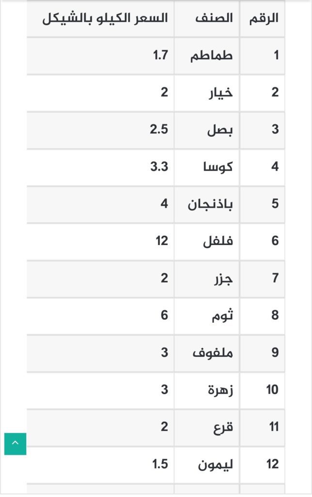 وفيما يلي متوسط أسعار الخضار والدجاج في قطاع غزة: (بالشيكل الإسرائيلي)