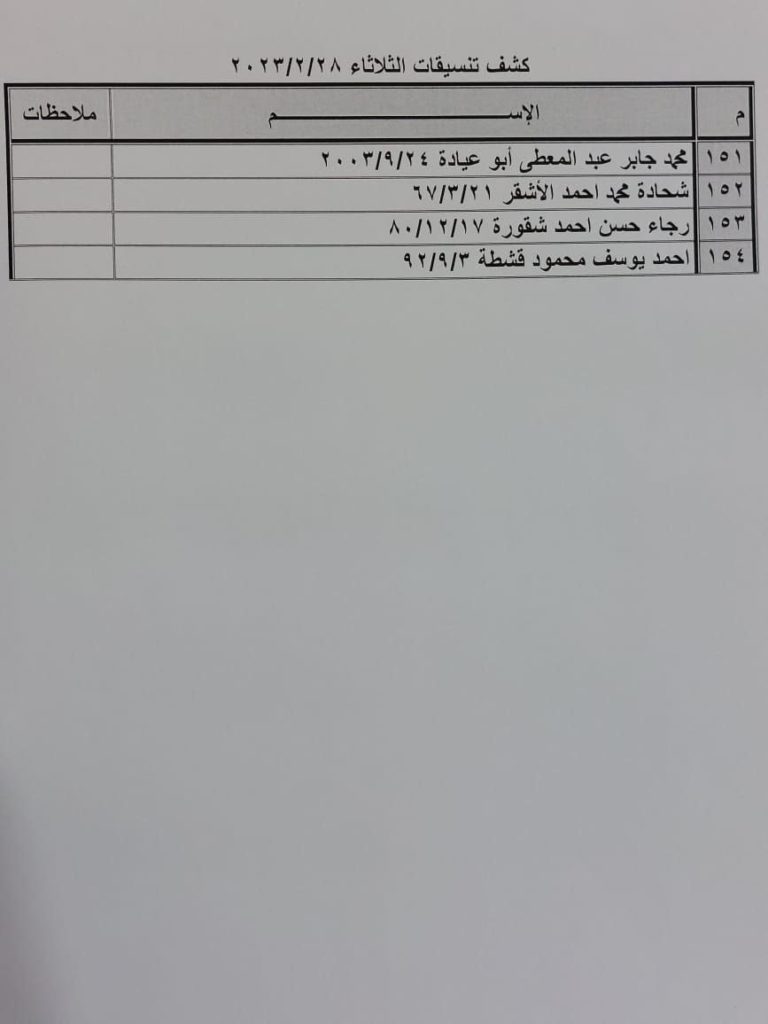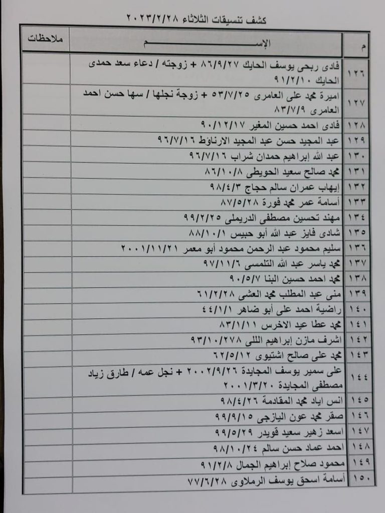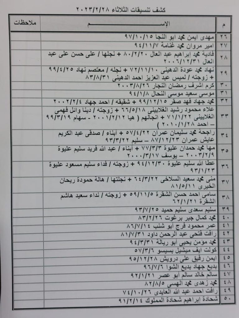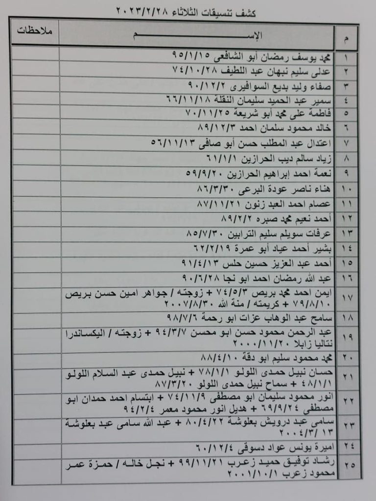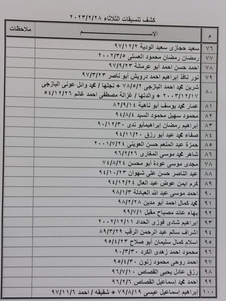 إعلان: كشف التنسيقات المصرية للسفر عبر معبر رفح يوم الثلاثاء (28 فبراير):