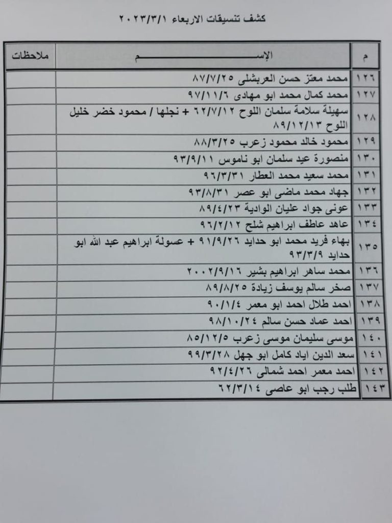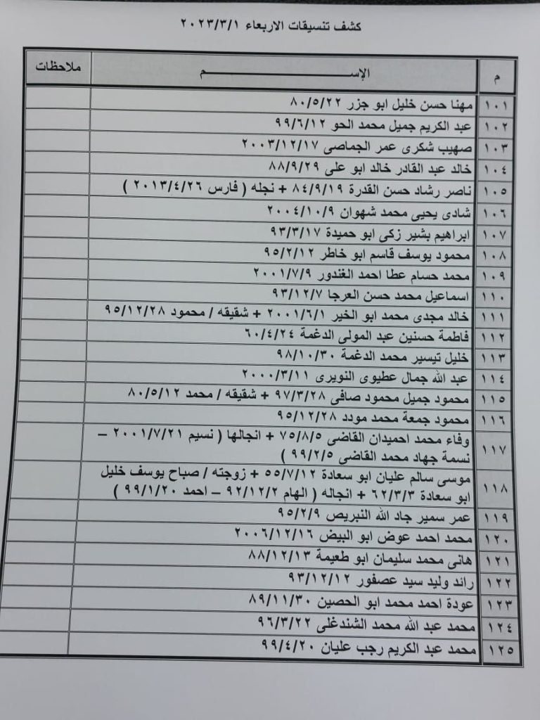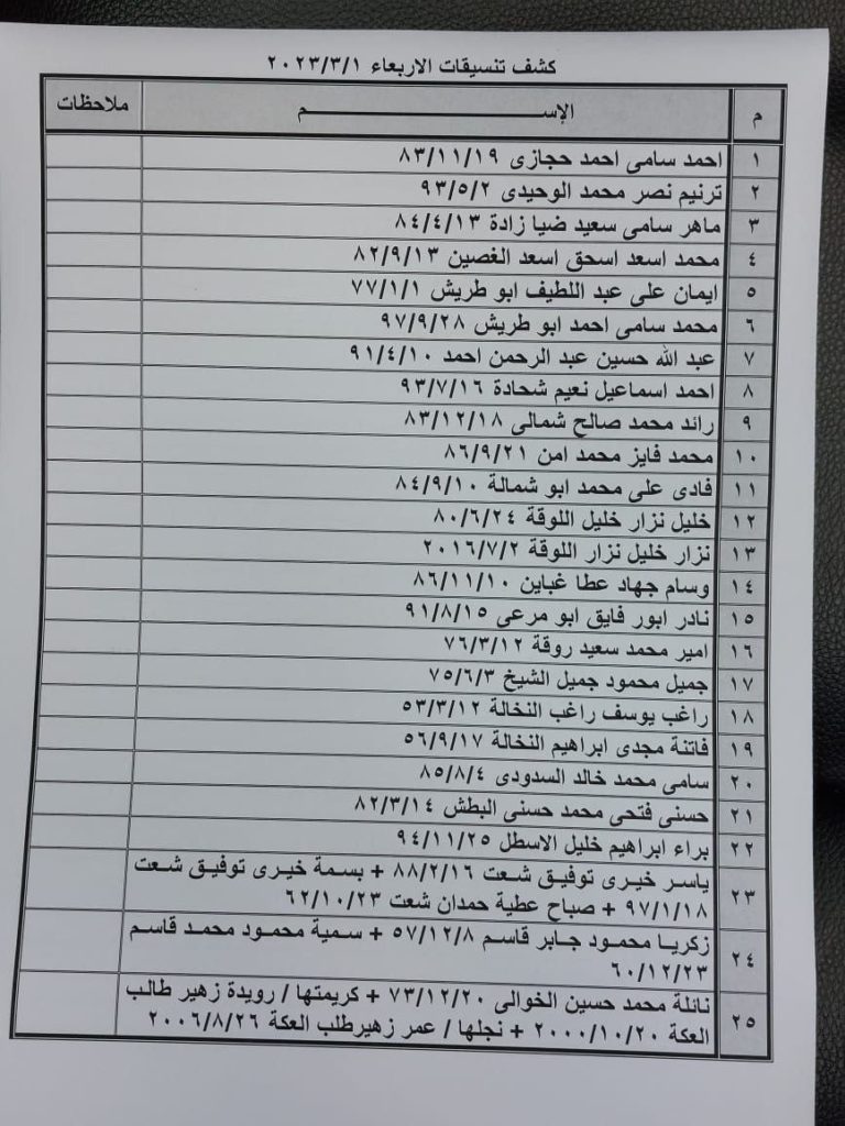 إعلان: كشف التنسيقات المصرية للسفر عبر معبر رفح يوم الأربعاء (1 مارس):