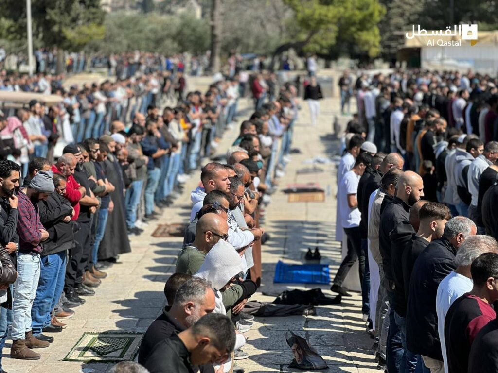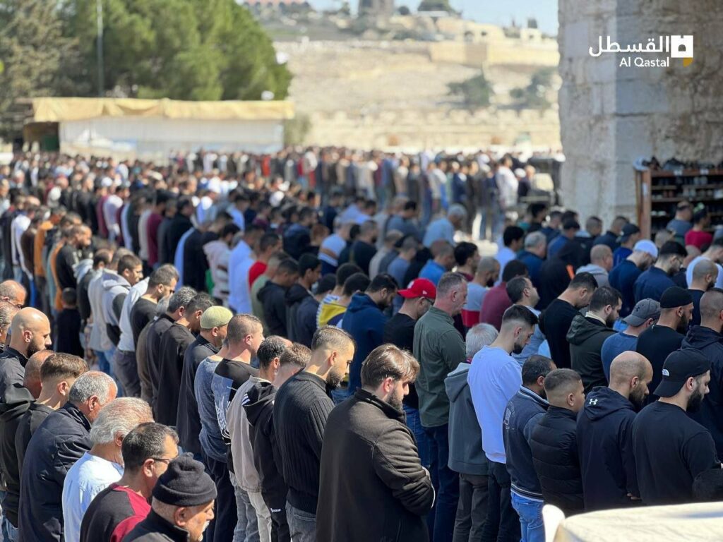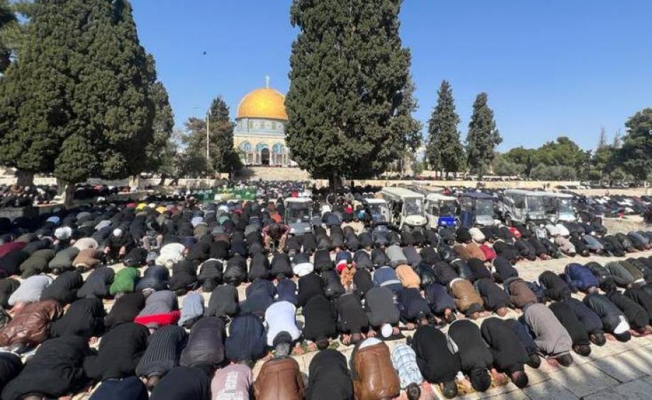 وقالت مصادر مقدسية أن 70 ألف مصل من أهالي القدس والداخل المحتل ومن تمكن من الوصول للمسجد من الضفة أدوا الصلاة في باحاته ومصلياته المسقوفة.