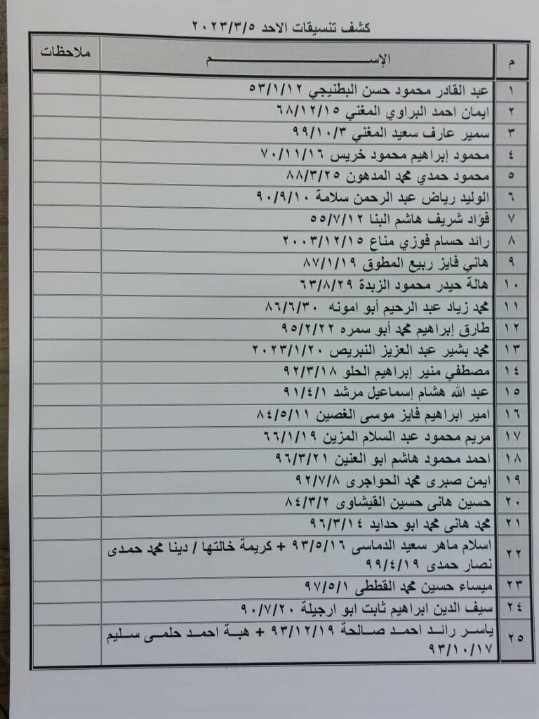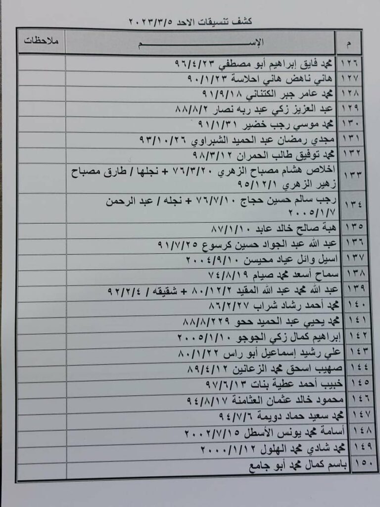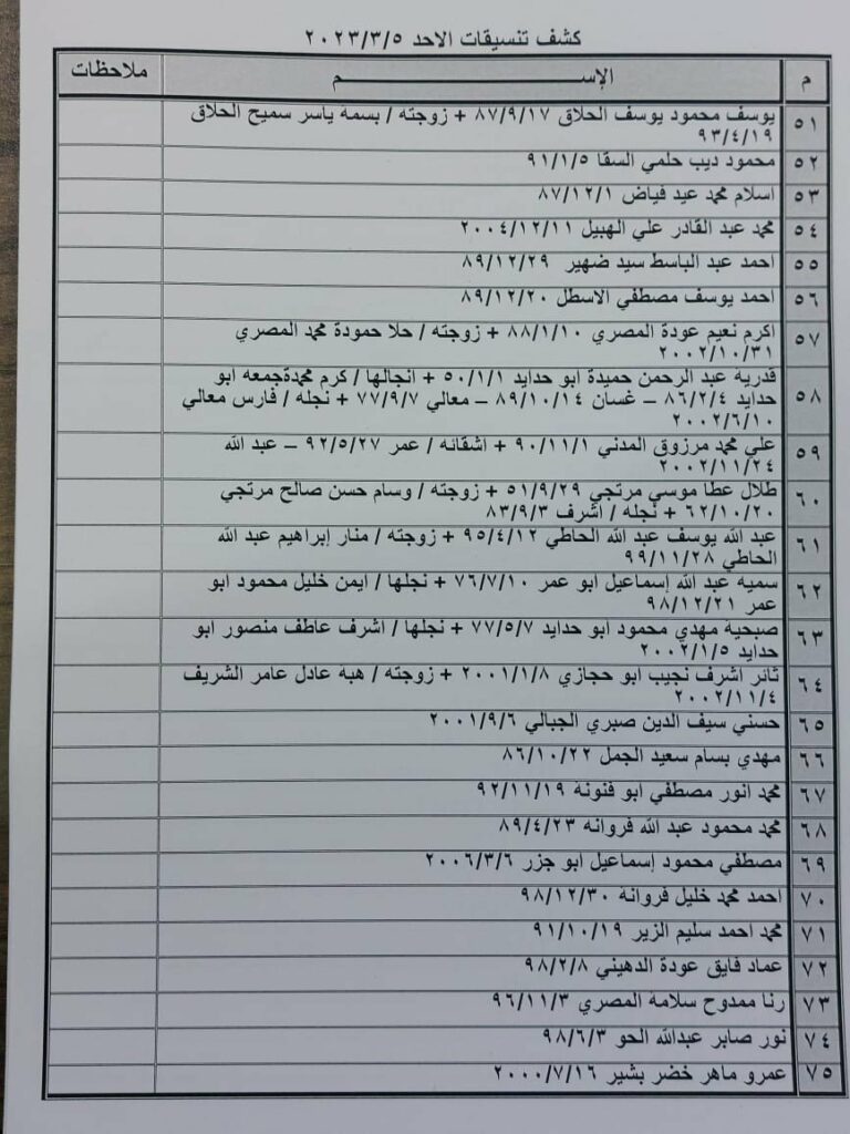 أعلنت الهيئة العامة للمعابر والحدود بوزارة الداخلية والأمن الوطني عن وصول كشف التنسيقات المصرية، للسفر عبر معبر رفح البري يوم الأحد 5 مارس 2023.
