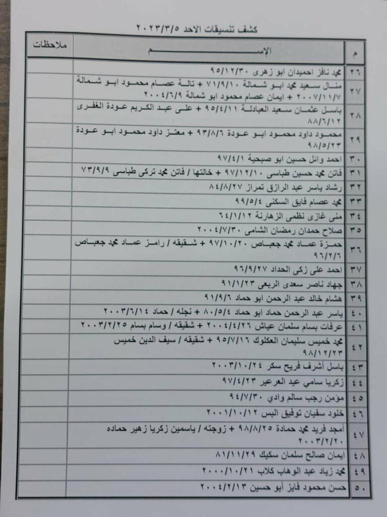 – تعلن الهيئة العامة للمعابر والحدود بوزارة الداخلية والأمن الوطني عن وصول كشف “تنسيقات مصرية” للسفر عبر معبر رفح البري يوم الأحد (5 مارس)، والذين عليهم التواجد س 7:00 صباحاً في الصالة الخارجية للمعبر لتسهيل سفرهم.