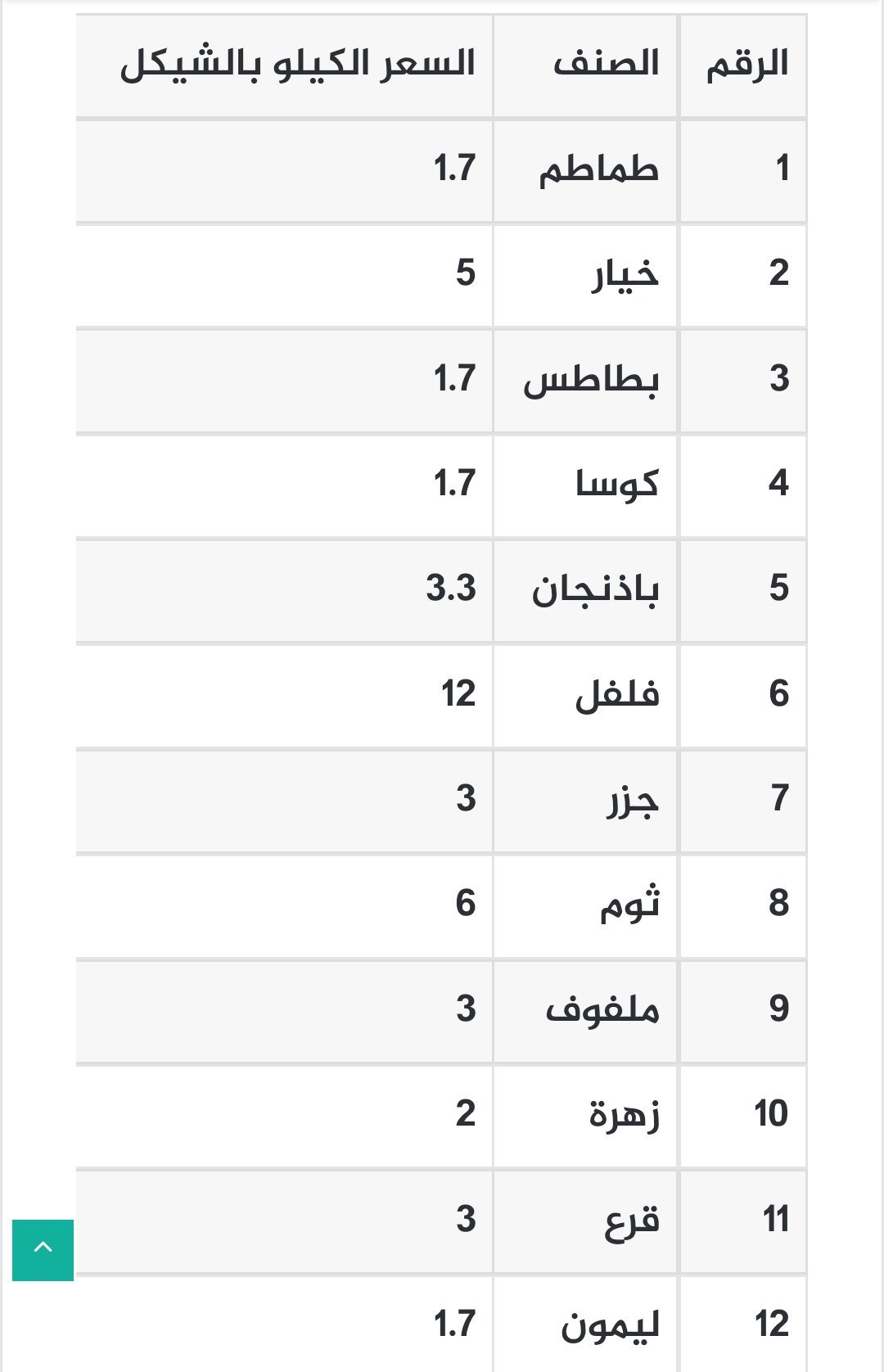 جاءت أسعار الخضروات والدجاج واللحوم في أسواق غزة،اليوم السبت 18 مارس 2023،عالنحو الآتي: