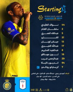 وجاء تشكيل النصر ضد أبها، كالتالى: