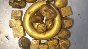 فأخرج الجرّة وبداخلها أساور وقلائد وسبائك ذهبية مختلفة الحجم والوزن.
