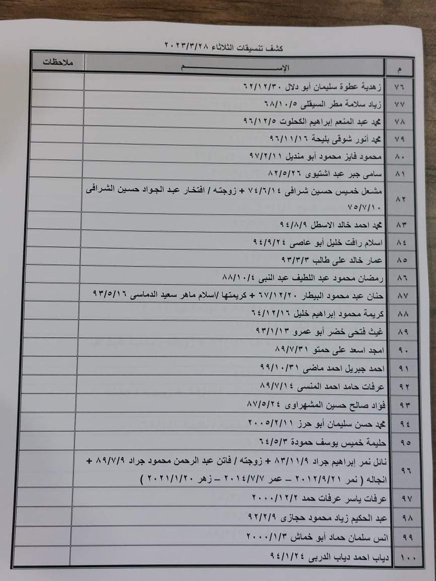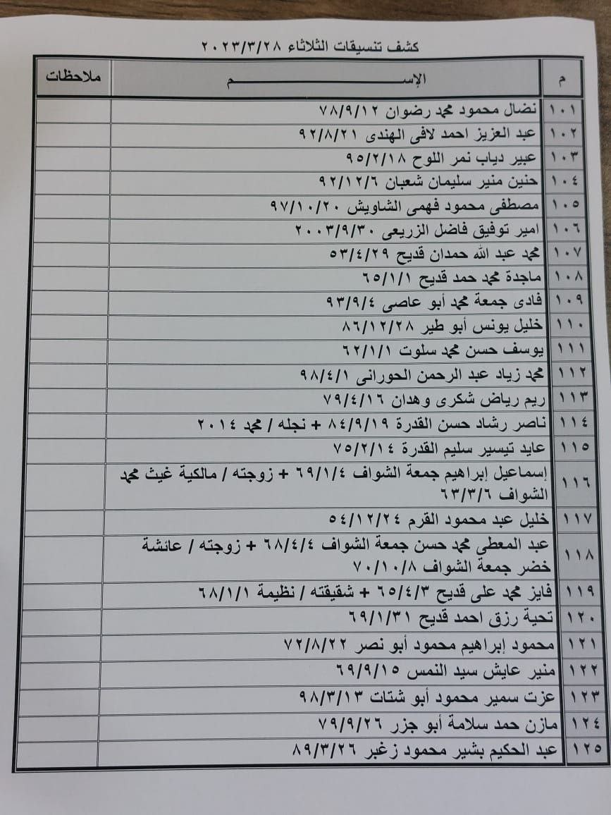 – تعلن الهيئة العامة للمعابر والحدود بوزارة الداخلية والأمن الوطني عن وصول كشف “تنسيقات مصرية” للسفر عبر معبر رفح البري يوم الثلاثاء (28 مارس)، والذين عليهم التواجد س 7:00 صباحاً في الصالة الخارجية للمعبر لتسهيل سفرهم.