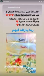 لكن اللافت هو اختيار الثنائي لاسم “جميلة” من أجل إطلاقه على اسم ابنتهم، وهو الاسم الذي حمله مسلسل ريهام حجاج الذي عرض في شهر رمضان الماضي.