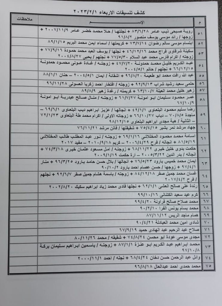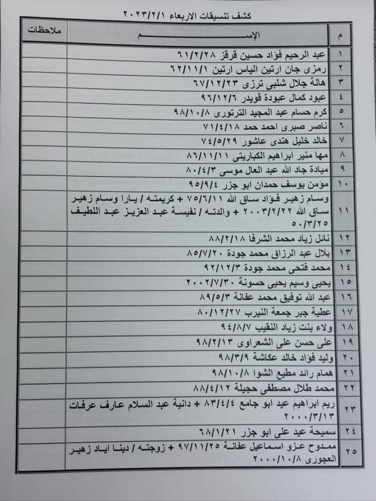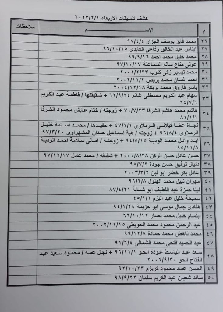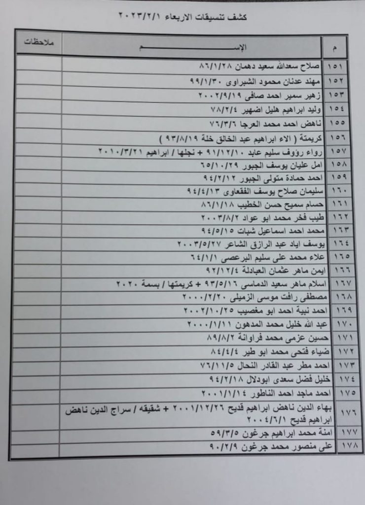 ودعت الهيئة الأسماء الواردة في كشف التنسيقات المصرية ليوم الثلاثاء التواجد الساعة السابعة صباحا في الصالة الخارجية لمعبر رفح لتسهيل سفرهم.