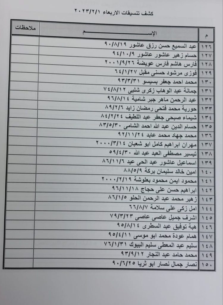 “بالأسماء”كشف التنسيقات المصرية ليوم الأربعاء 1 فبراير 2023