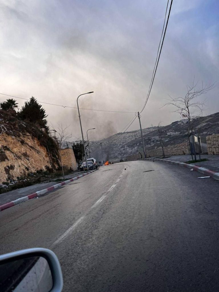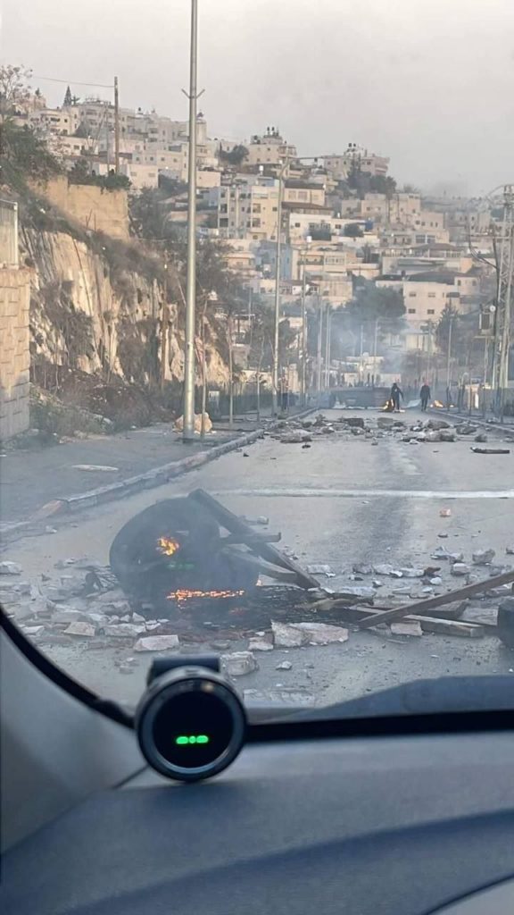 ووضع الشبان حاويات النفايات على الطرق، لعرقلة حركة الآليات الإسرائيلية التي تخطط لاقتحام البلدة.