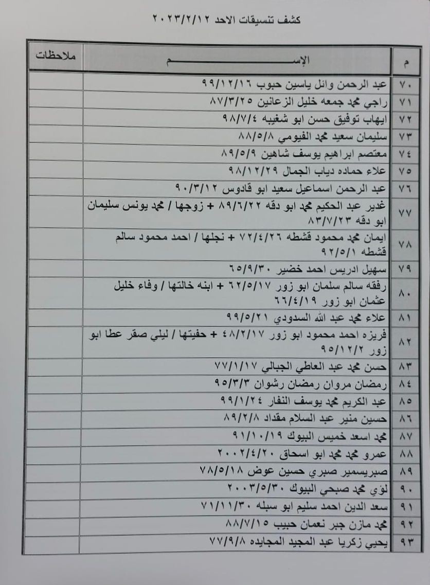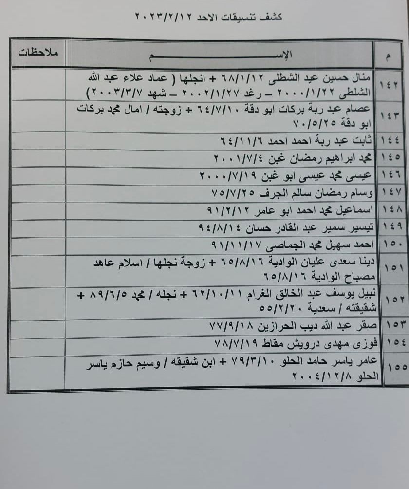 أعلنت الهيئة العامة للمعابر والحدود بوزارة الداخلية والأمن الوطني في غزة الخميس، عن وصول كشف التنسيقات المصرية، للسفر عبر معبر رفح البري يوم الأحد القادم 12فبراير 2023.