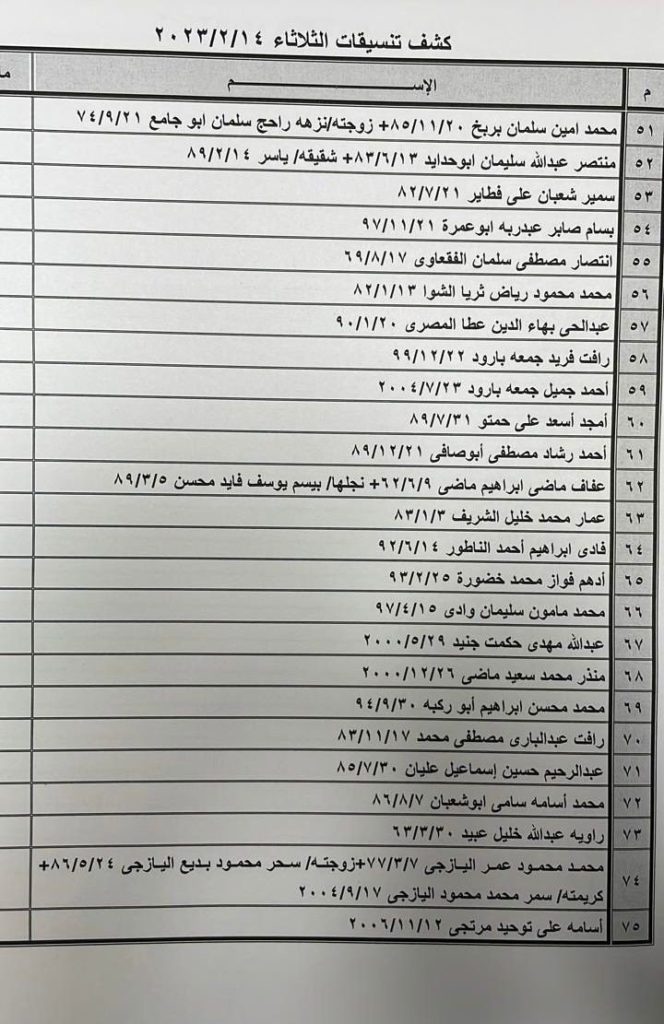 نشرت وزارة الداخلية في غزة ، صباح اليوم الاثنين 13 فبراير 2023، كشف “تنسيقات مصرية” للسفر عبر معبر رفح يوم الثلاثاء 14 فبراير.