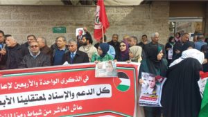 أكد محمود الزق عضو المكتب السياسي لجبهة النضال الشعبي الفلسطيني فى كلمته باسم لجنة الأسرى للقوى الوطنية والإسلامية بقطاع غزة أمام مقر اللجنة الدولية للصليب الأحمر الدولي دعما وأسنادا لأسرانا في سجون الاحتلال والتي نظمها حزب الشعب الفلسطيني في الذكرى 41 لتأسيسه بحضور ممثلي القوى الوطنية والإسلامية وأهالي الأسرى وحشد جماهير من كوادر حزب الشعب الفلسطيني أن ما يتعرض له أسرانا فى سجون الاحتلال من إجراءات عنصرية من قبل حكومة اليمين المتطرف فى دولة الاحتلال يتطلب أن نكون موحدين فى مواجهة سياسة العنصري أيتمار بن غفير لفضح سياسة الأحتلال التى يرتكبها بحق الأسرى من سياسة الاهمال الطبي المتعمد.
